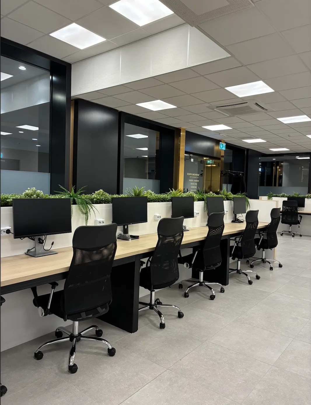 Our Hot Desk area offers a shared workstation for up to 12 people, allowing everyone to work comfortably at the same time. Each seat includes a monitor connection — HDMI for all desks and USB-C on selected ones — so you can plug in and start working right away.